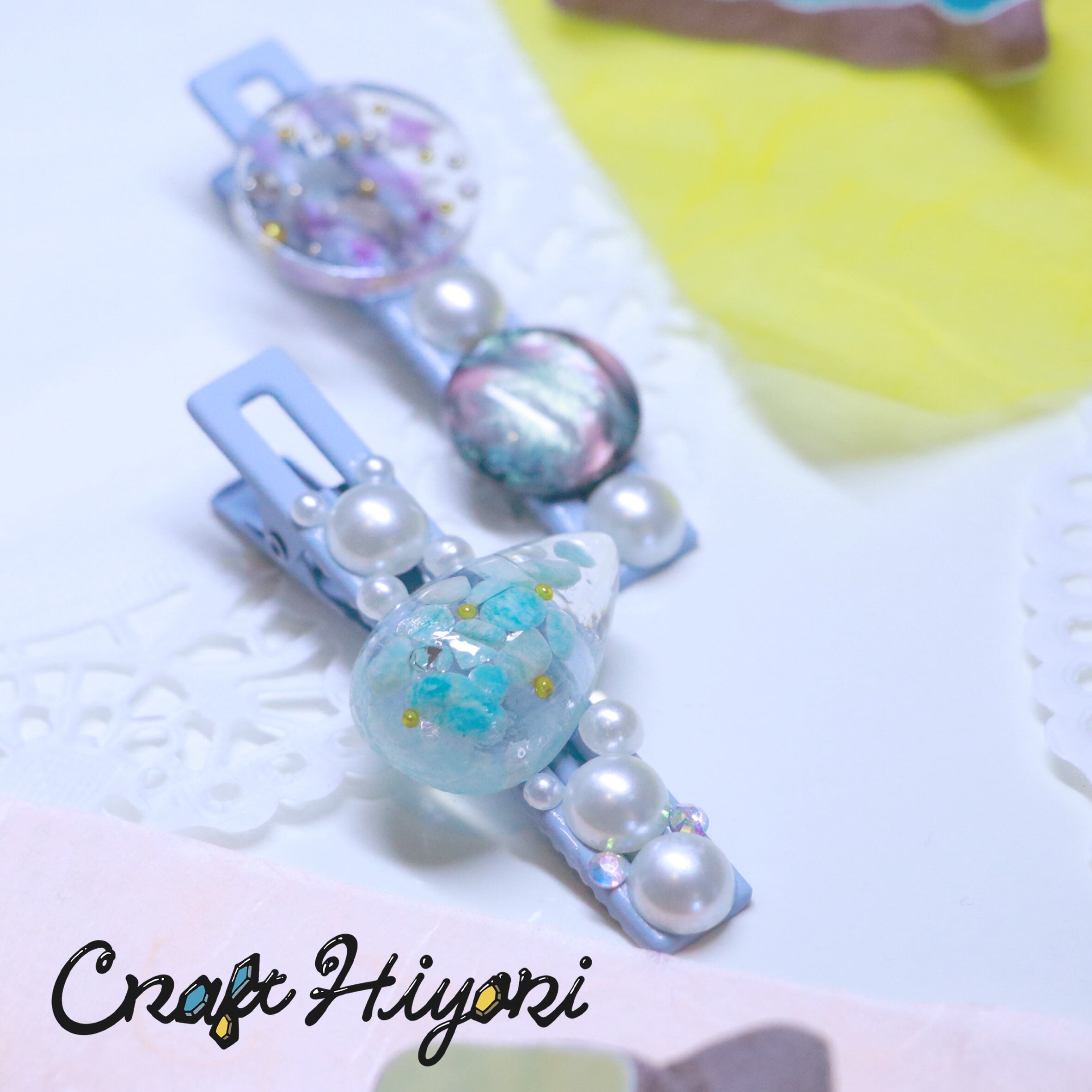 涼しげな印象のドロップヘアクリップ